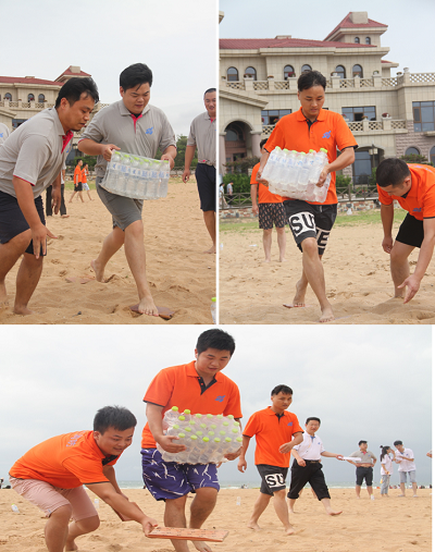 摸石頭過(guò)河,需要兩名隊(duì)員協(xié)作配合,一人抱重物,另一人將隊(duì)友腳下的木板依次往前方更替,直至到達(dá)終點(diǎn),最終用時(shí)少的一方獲勝。團(tuán)隊(duì)的前進(jìn)離不開(kāi)每一個(gè)銷售人員的參與,角色可能稍微不同,你跑新市場(chǎng)我守老客戶,你負(fù)重前行時(shí),我就為你鋪路,我們是一個(gè)團(tuán)隊(duì),配合默契,共同做好市場(chǎng)。一組全力以赴之后,下一組接力,繼續(xù)前進(jìn),肩上的責(zé)任永不放下,腳下的路程越來(lái)越短,離目標(biāo)、離成功越來(lái)越近。